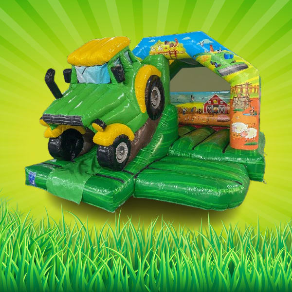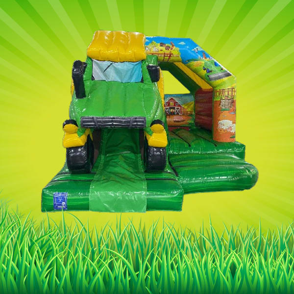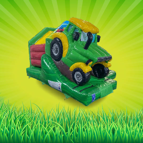 Bring the countryside adventure to your party with our 3D Farm & Tractor Combi Bouncy Castle. Perfectly designed to captivate young minds, this bouncy castle is more than just a play area; it's a gateway to a world of imagination and fun. Shaped like a classic green John Deere tractor, this bouncy castle comes alive with a striking 3D design, making it an ideal attraction for children's birthday parties. Whether your little ones are aspiring farmers or simply love tractors, this bouncy castle promises endless entertainment.