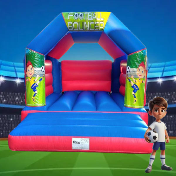 Bring the excitement of the football field to your garden with our vibrant Football Themed Bouncy Castle. Measuring an impressive 11ft x 14ft, this bouncy castle is perfect for football enthusiasts of all ages, ensuring hours of fun and entertainment. Whether you're hosting a birthday party, a community event, or a family gathering, this bouncy castle will be the highlight of the day.